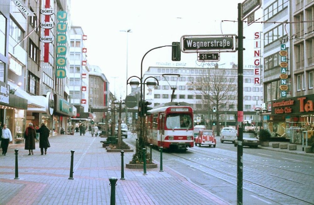 | 15/03/1985 | 850131 | 23 | Jan-Wellem-Platz | Out | In | 4007 | New Stadtbahn-B car approaching from Berliner Allee |