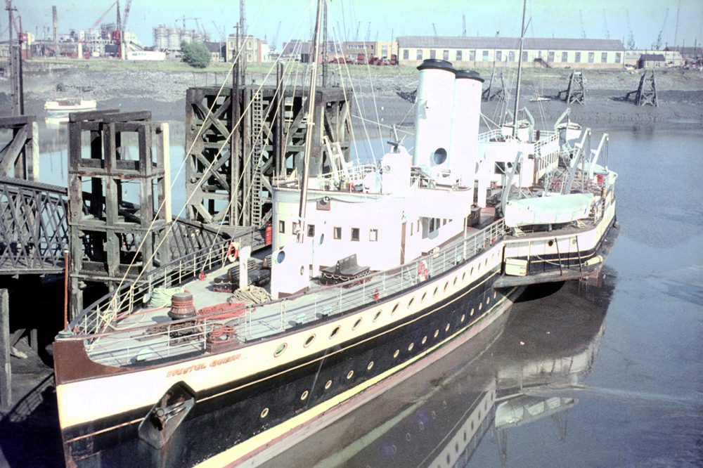 Bristol Queen in a photograph taken at Cardiff on August 27th 1967 by Nigel Lawrence. This was effectively the end for her as she had twice in the previous month encountered paddle problems where radius rods had had to be replaced. On the 26th, the paddles themselves were damaged after hitting underwater debris off Barry. On the 29th she entered Queens Dock in Cardiff for lay-up as Campbell's considered the fate of the vessel. With large expenditure needed to sort all her paddle-wheel problems, the decision was taken not to undertake the work and to offer her for sale alongside fleetmate Cardiff Queen, which had not been reactivated for the 1967 season. Not helped by more damage incurred when a large tanker bumped into her whilst in dock, Campbell's had waited until the end of 1967 before considering bids from scrap dealers just in case the vessel could be saved. On March 21st 1968 she left Cardiff under tow heading for Belgium and scrapping.`