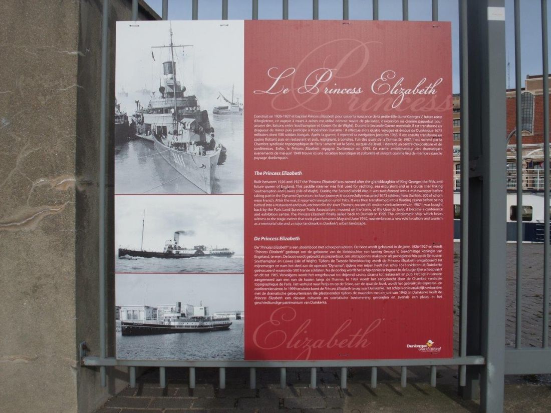 Below : Explanatory notes at the entrance to the ship give a short history and celebrates her return to Dunkerque, where, during the Second World War, she evacuated 1673 soldiers from the beaches during Operation Dynamo. 500 of those soldiers are reported to have been French