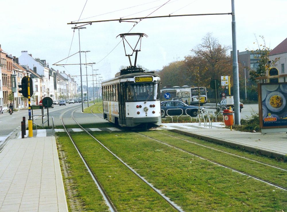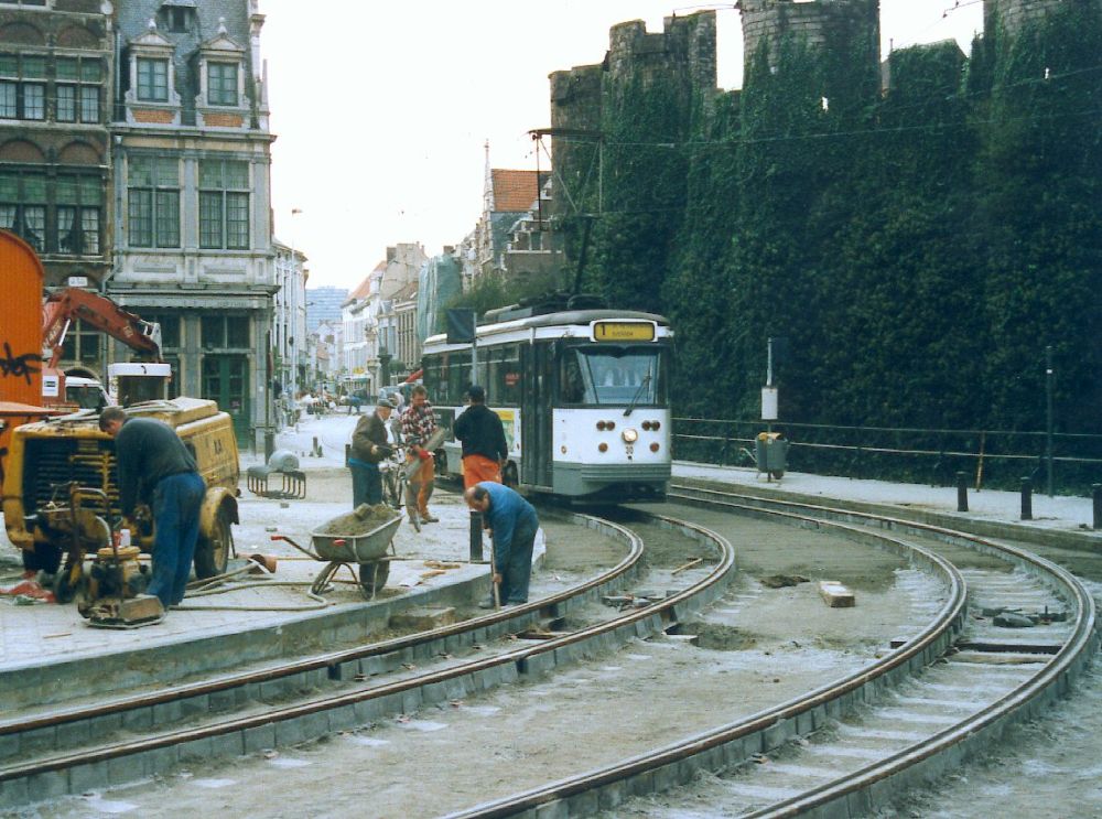 Tram at terminus. Extension to Evergem branching to the left |
