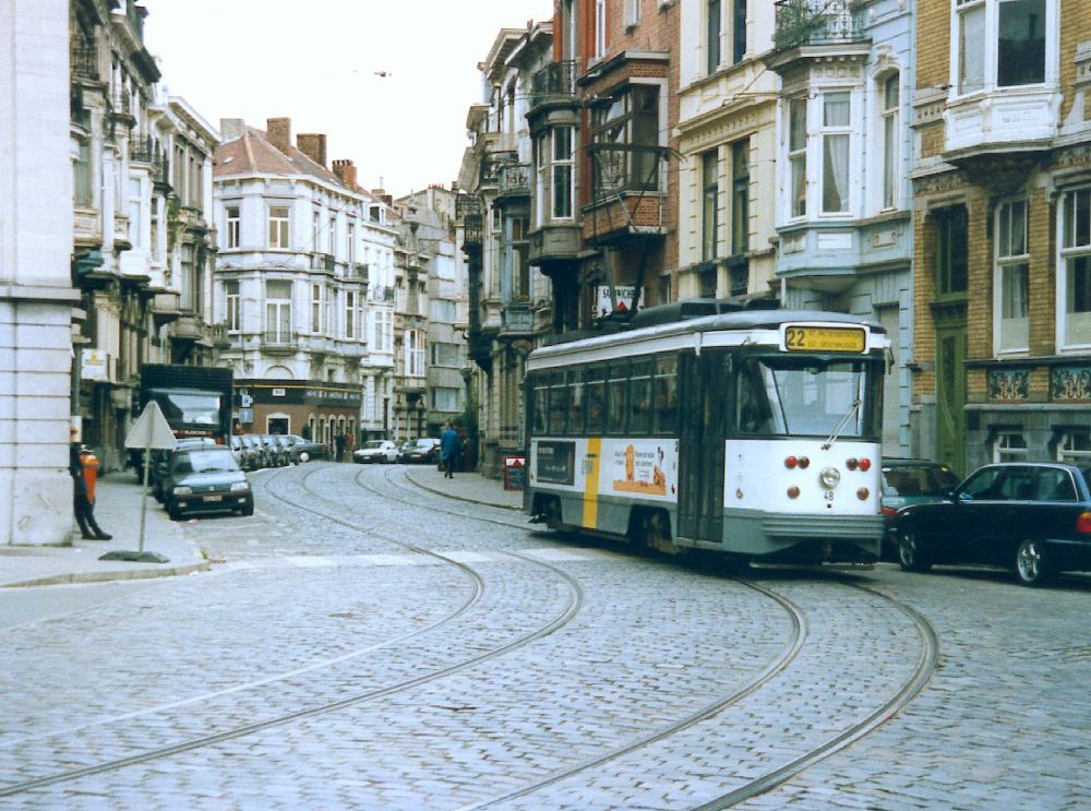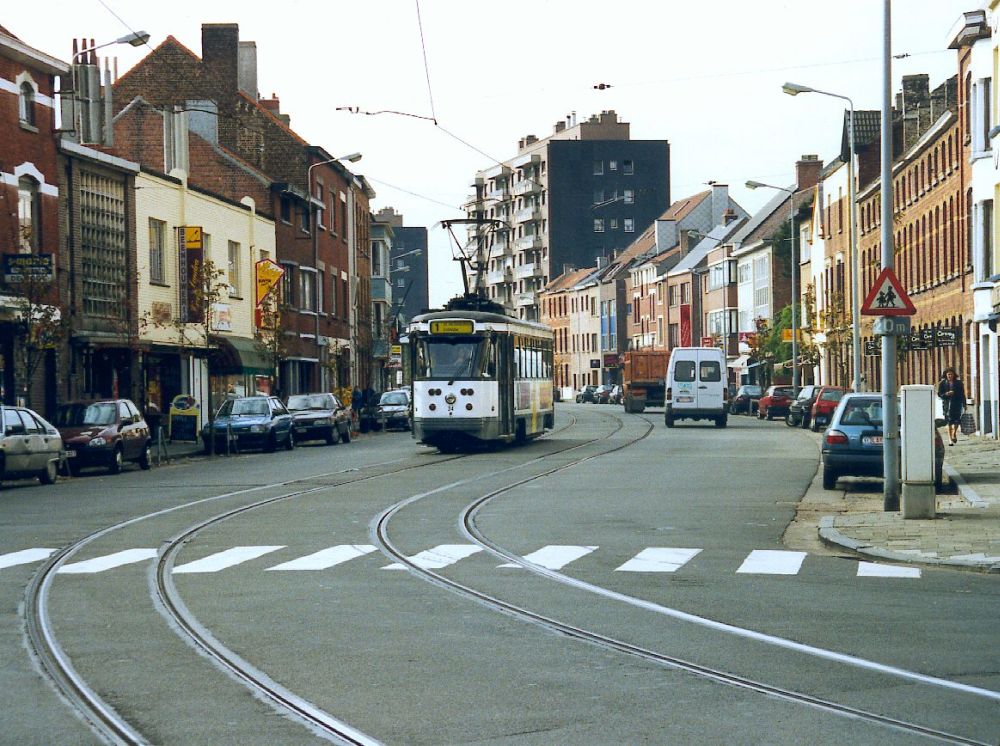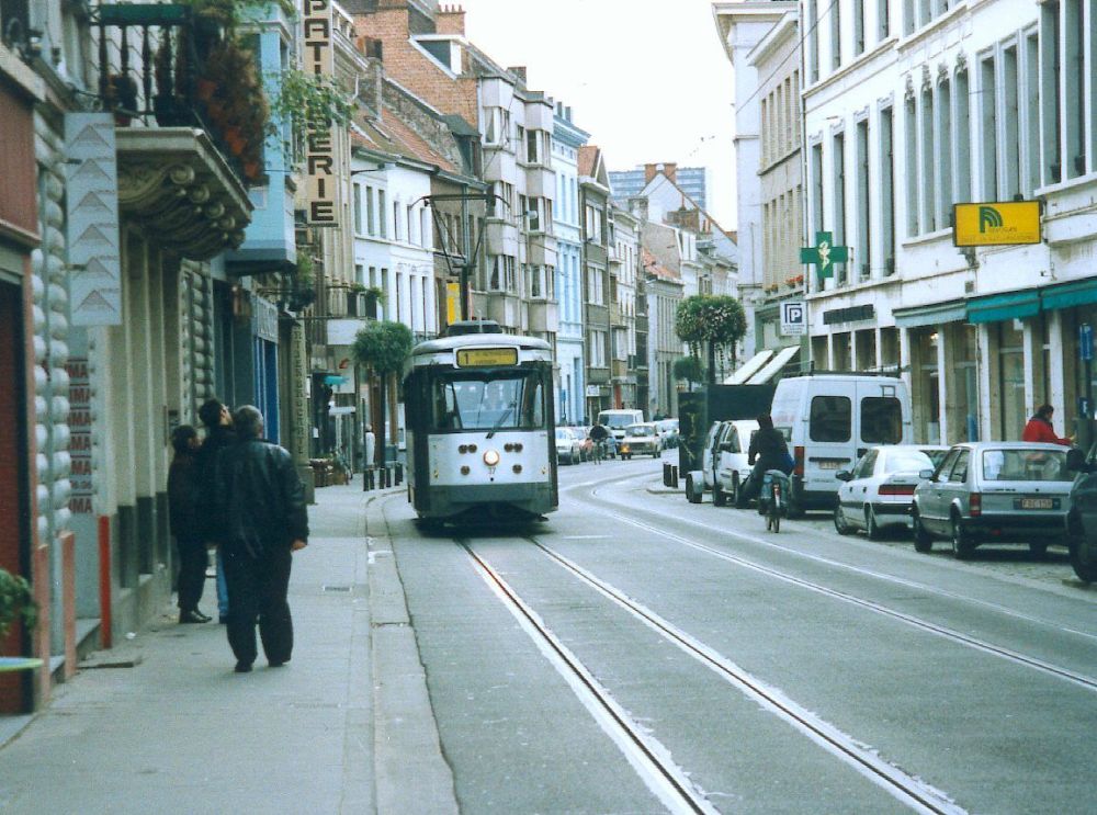 View along Cataloniestraat, tram turning out of St Niklaasstraat |