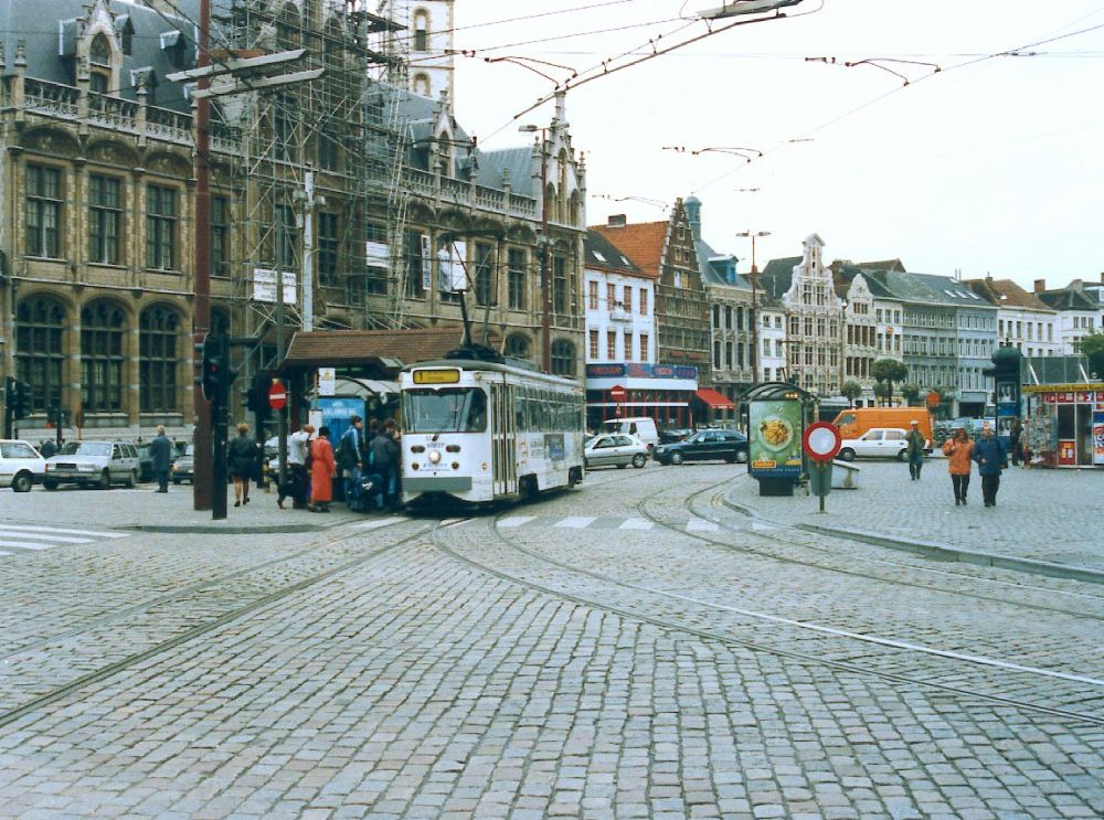 Tram approaching Korenmarkt tram stop from Cataloniestraat |