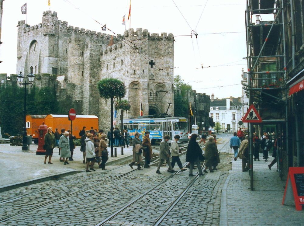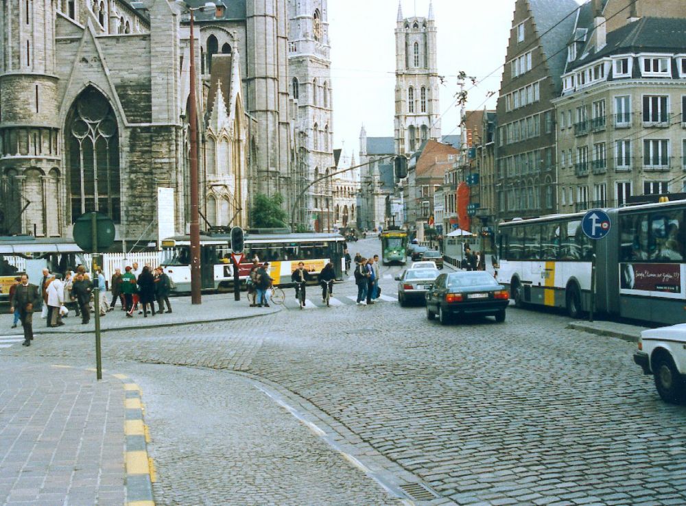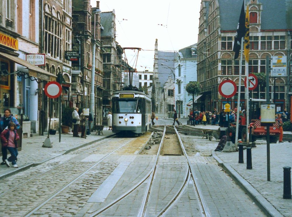View across to Cataloniestraat. Korenmarkt tram stop to the left. |