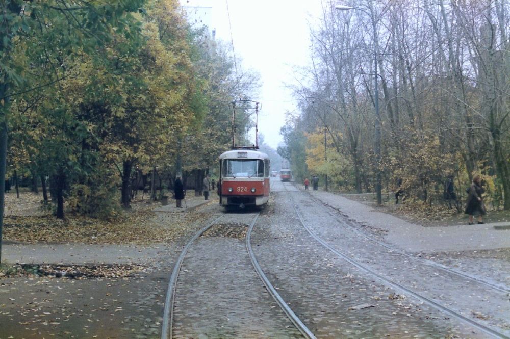 | Above : Tatra tram 924 heads south east on Mikhalkovskaya Ulitsa approaching the junction with Ulitsa Bol'shaya Akademischeskaya. Tram route 27, which commenced at Voykovskaya metro station continued along Timiryazevskaya Ulitsa and other major streets almost to the edge of the city centre before turning back in a large arc to terminate at Ulitsa 8. Marta. At the junction of Butyrskaya Ulitsa and Ulitsa Nizhnyaya Maslovka at Savyolovskaya metro station, the line came within 750 metres of the main Moscow tram network on Ulitsa Dvintsev. Whilst this might now have been regarded as a perfect opportunity to connect the two systems, that opportunity no longer exists. Line 27 was curtailed to a new loop at Dmitrovskaya Station. In 2019 new proposals were tabled to make a link from the surviving section of line 27 to the northern part of the main network at Ostankino. | ||||||