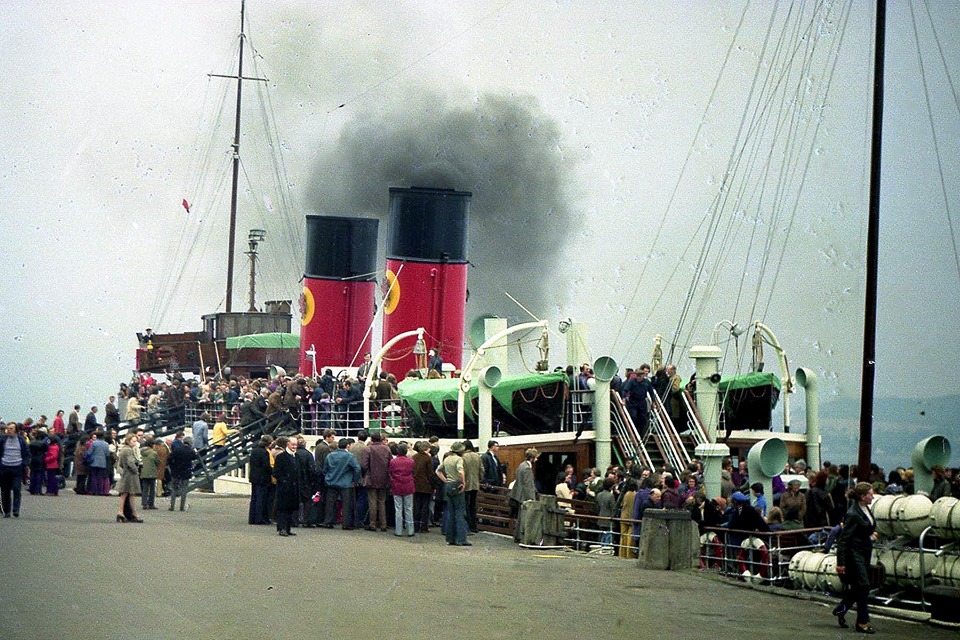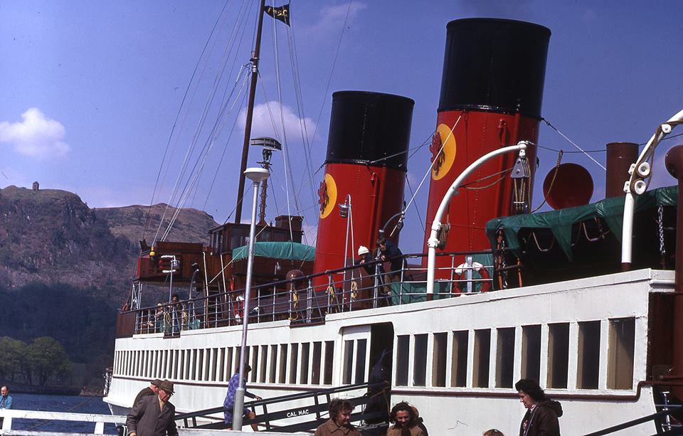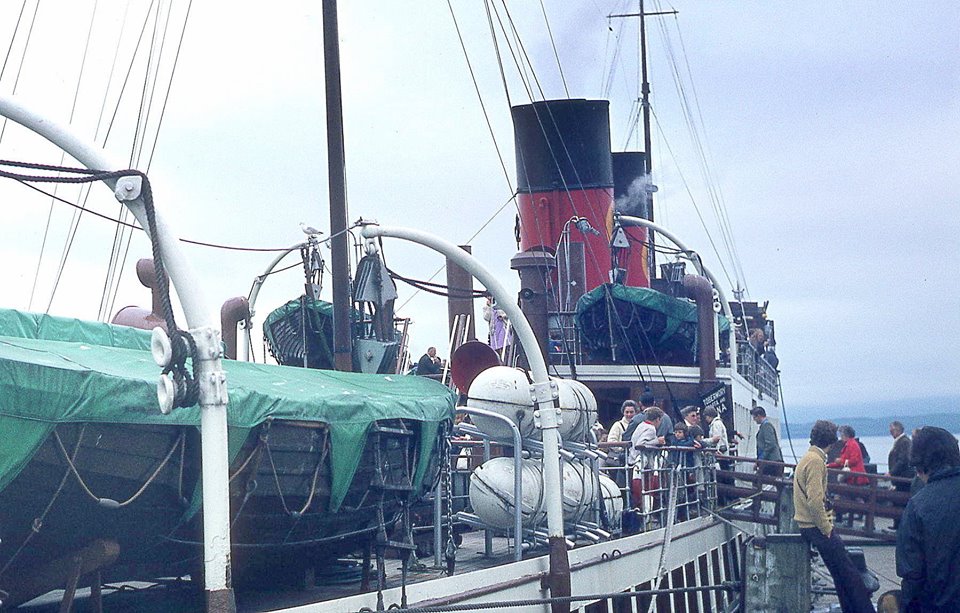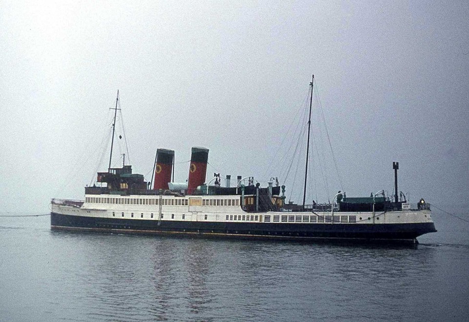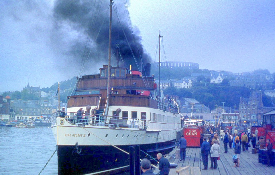 In 1973 King George V added the Caledonian lion rampant to her red MacBraynes funnels - for a last campaign .....